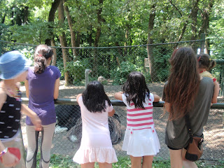 Once Gabi arrived with the rest of the kids, Orsi, and Jessica, we took them to the park that is in front of the zoo to play for a little while before going into the zoo. This playground was totally impressive!! It had tons of different areas for the kids to play on. One was this zip line type thing. One of the girls had Nathan pushing her on it for most of the time, she just loved it!!!